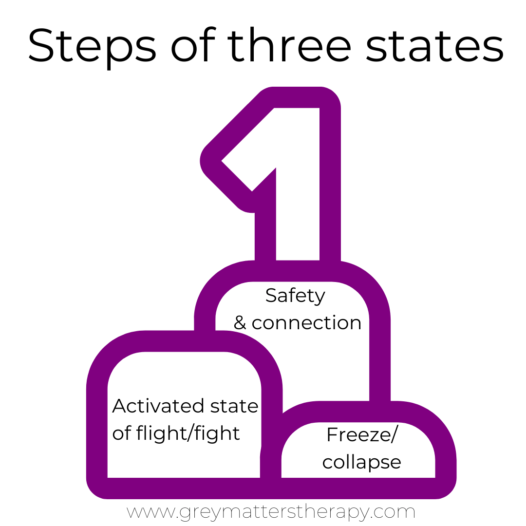 One of the most valuable pieces of information I learned about trauma and PTSD is that it often involves a “nervous system dysregulation.” Our nervous systems consist of 3 states–sympathetic, parasympathetic, and ventral vagal. Those are some big words, so let me break it down further. Ventral vagal is when we are inside our “window of tolerance.” This means we might feel joy, grounded, happy, content, passionate, mindful, curious, open, etc. A “home base” if you will. The other two states, when we are outside our window of tolerance, is sympathetic and parasympathetic. Some more well known terms are fight, flight, freeze. Fight–rage, anger, irritation, and frustration. Flight–panic, fear, anxiety, worry, and concern. Freeze–helplessness, depression, numbness, dissociation, shame, hopelessness, trapped. Situations throughout our life trigger these responses. If we are able to process these emotions in a healthy way, we will file them in our brains as experiences in the past, make some sort of meaning of it, and move forward.